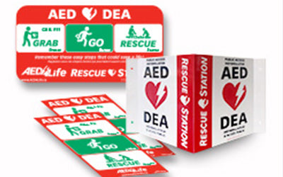 L'AED Shop propose plusieurs options de signalisation et d'armoires pour pouvoir identifier facilement l'emplacement d'un DAE dans un lieu public. Avec la signalisation bilingue, votre entreprise peut être tranquille en sachant que votre personnel, vos visiteurs et le grand public peuvent facilement identifier l'emplacement de l'unité en cas de sauvetage suite à un arrêt cardiaque.